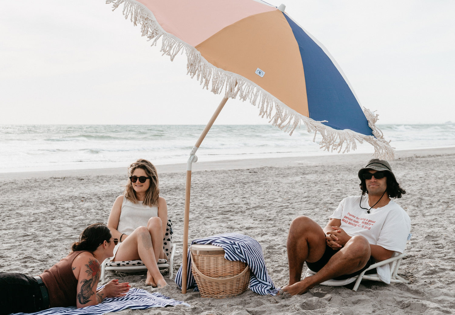 Premium UPF50+ beach umbrellas and chairs designed for the New Zealand summer.