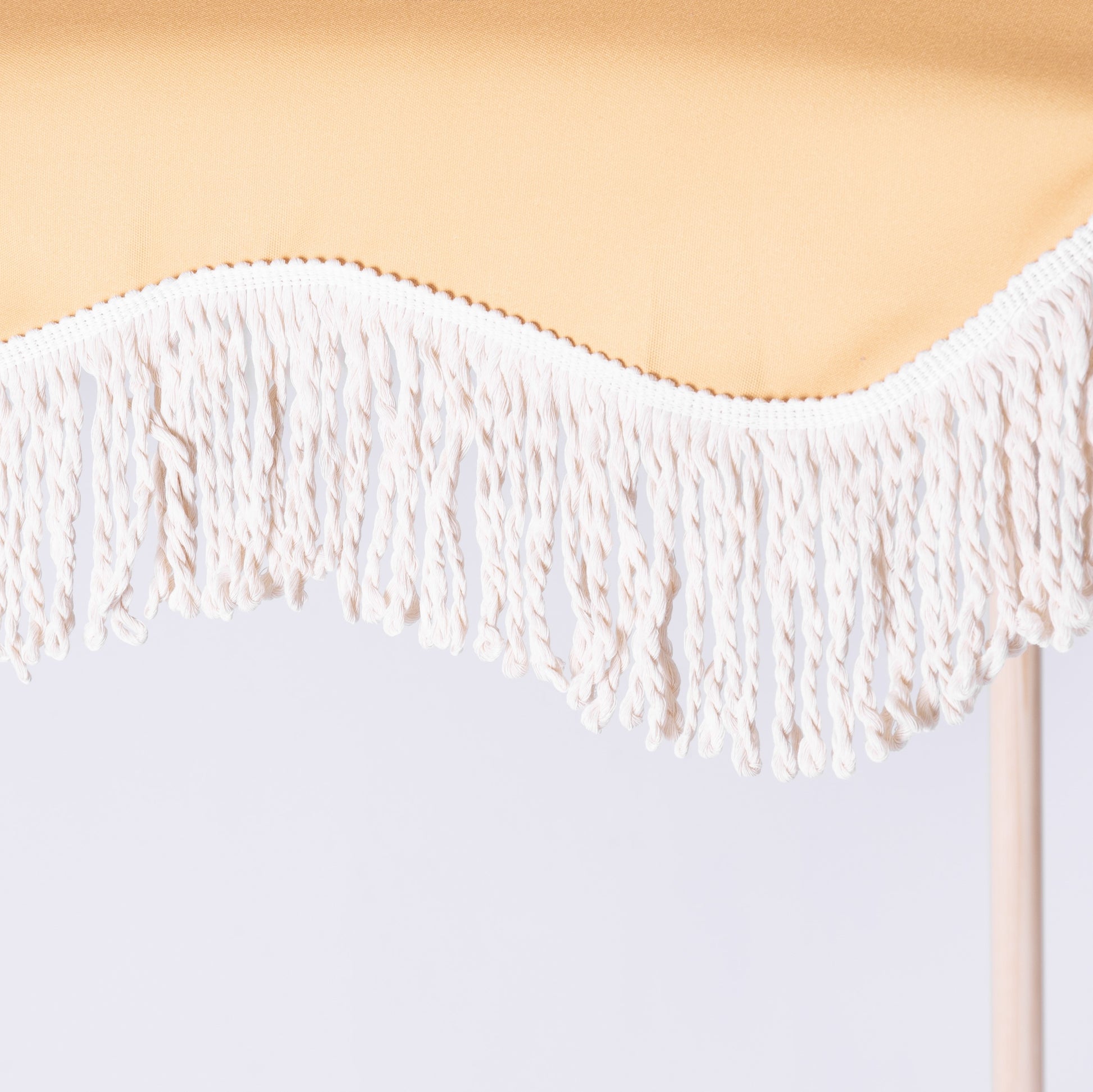 Look good this summer under this stunning beach umbrella in our panel design with the iconic tassel look. The large design will provide enough shade for you and your family to sit and play underneath confident in your protection from the sun.