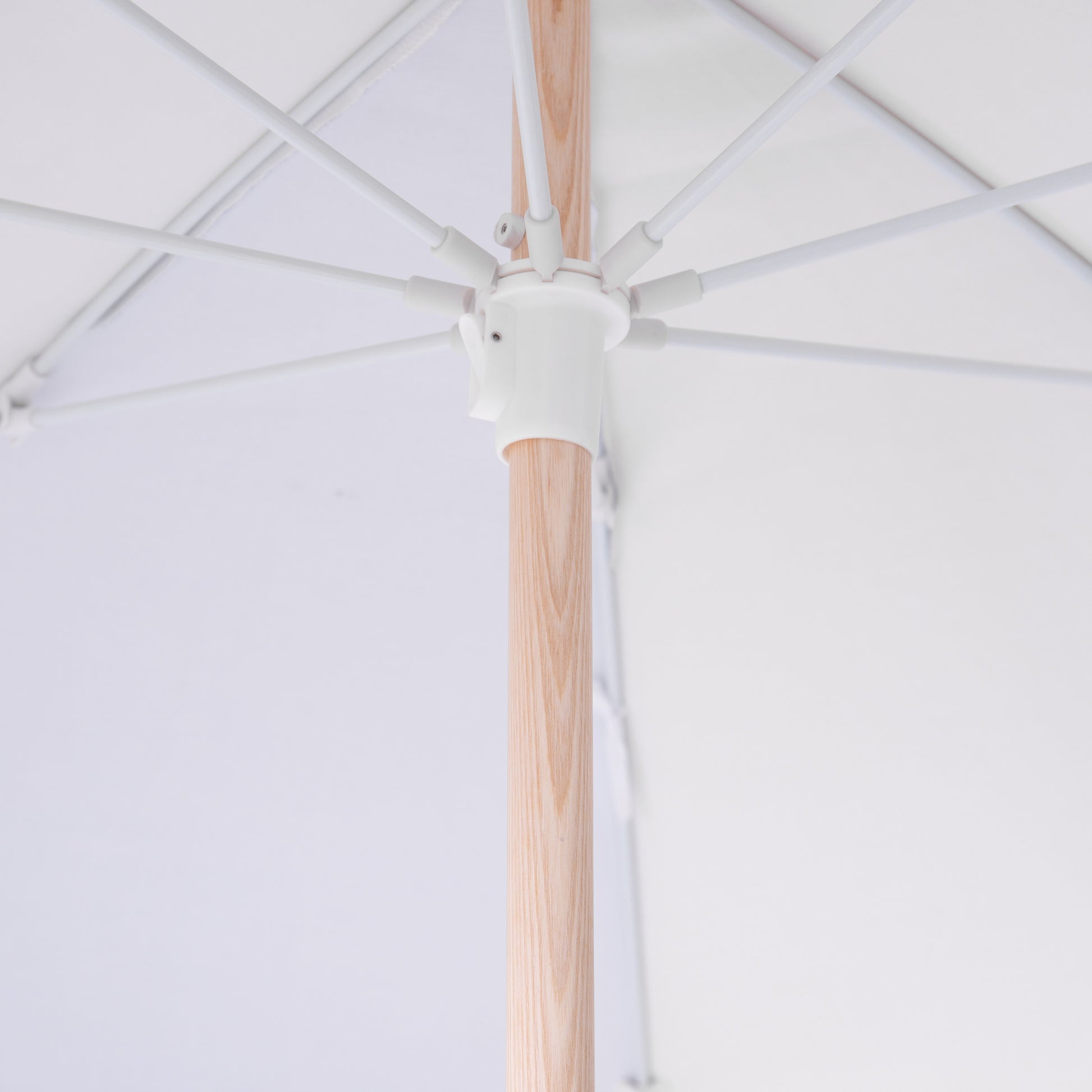 Made with a water resistant eco-friendly fabric with cotton rope tassels around the edge providing UPF50+ sun protection. 32mm reclaimed wood shaft, 8mm fibreglass ribs with a powder coated zinc alloy tilt mechanism.