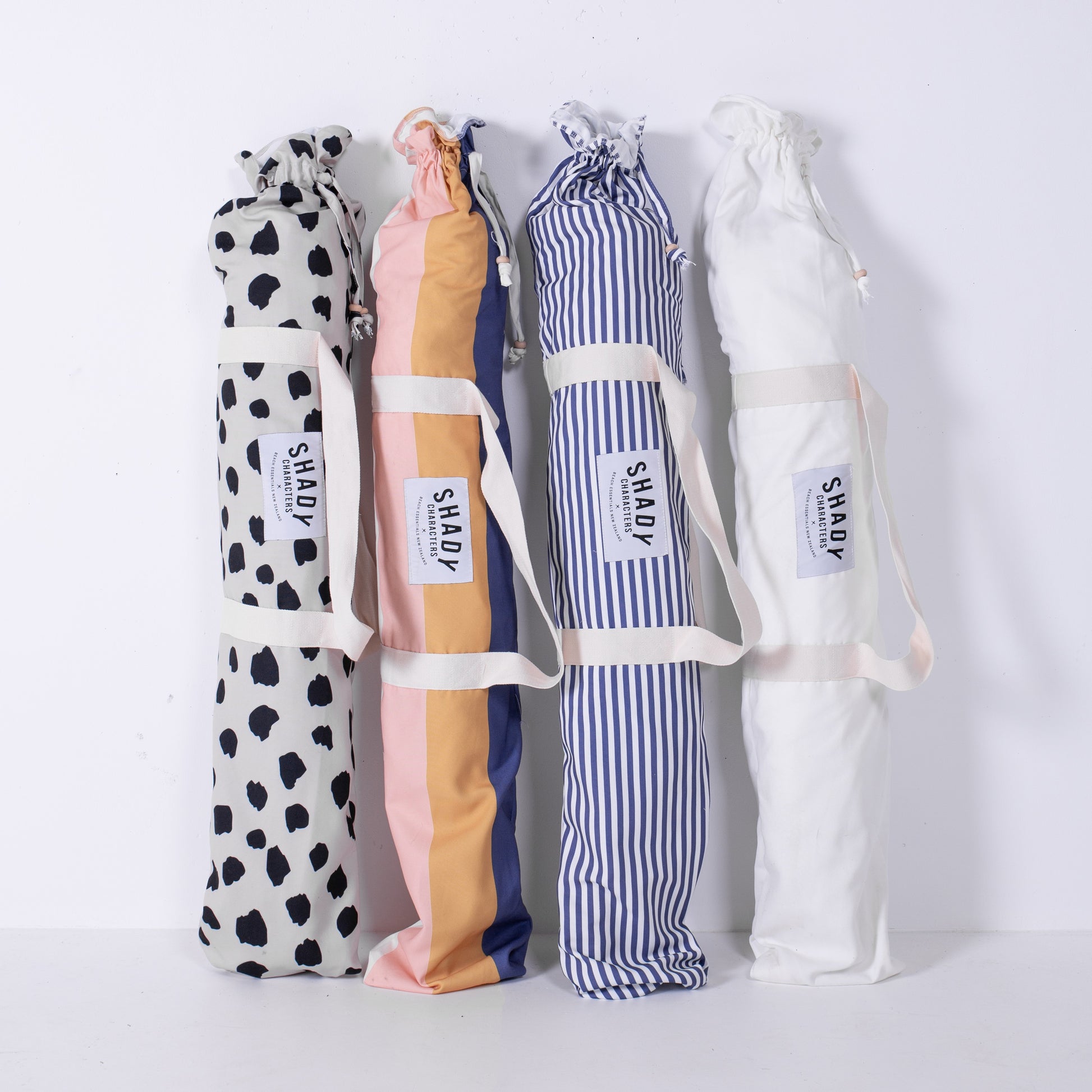 This umbrella is timeless in its classic design with tassels. This lightweight beach umbrella allows you to angle the umbrella to suit and comes with a great looking carry tote bag to pack up and take the umbrella wherever you go.