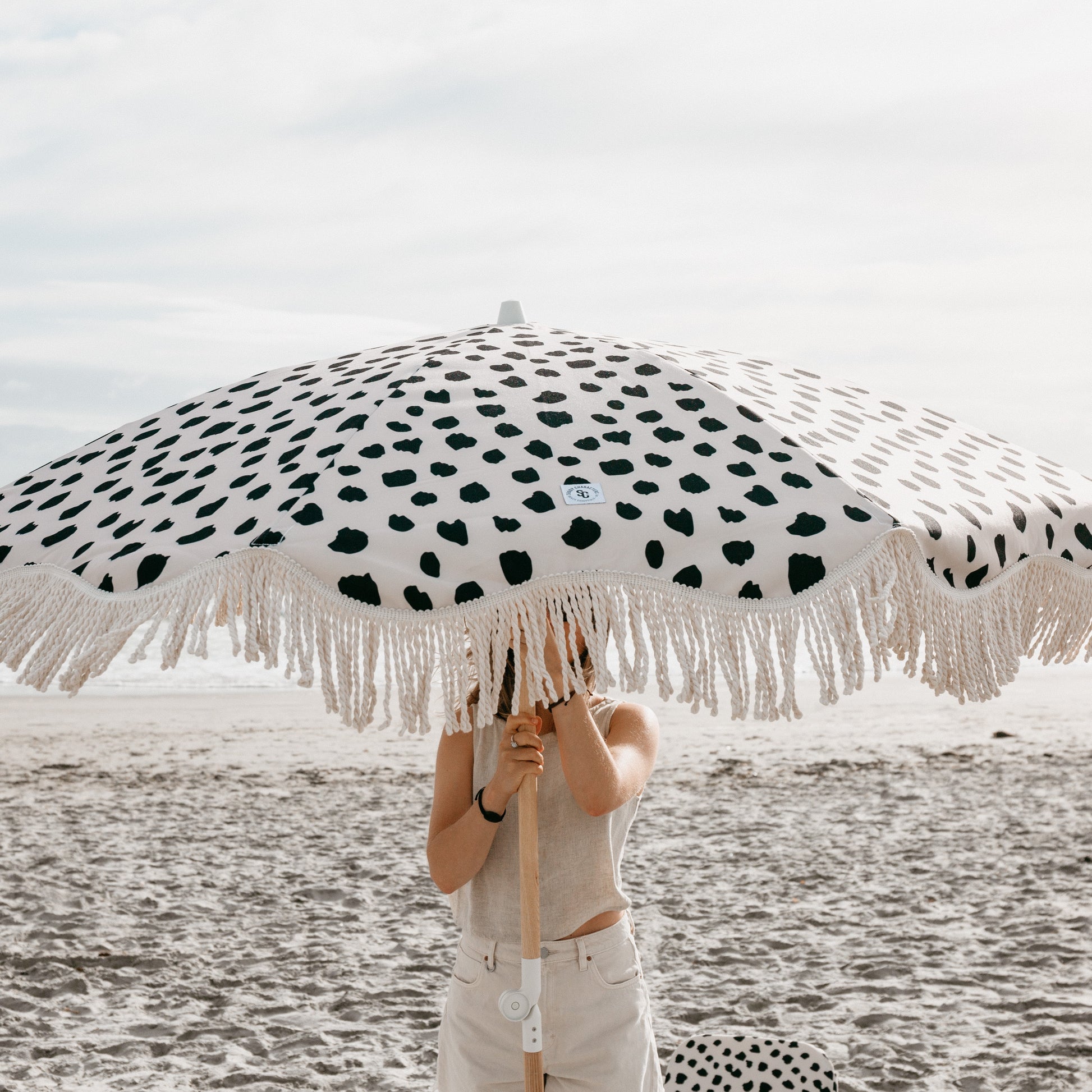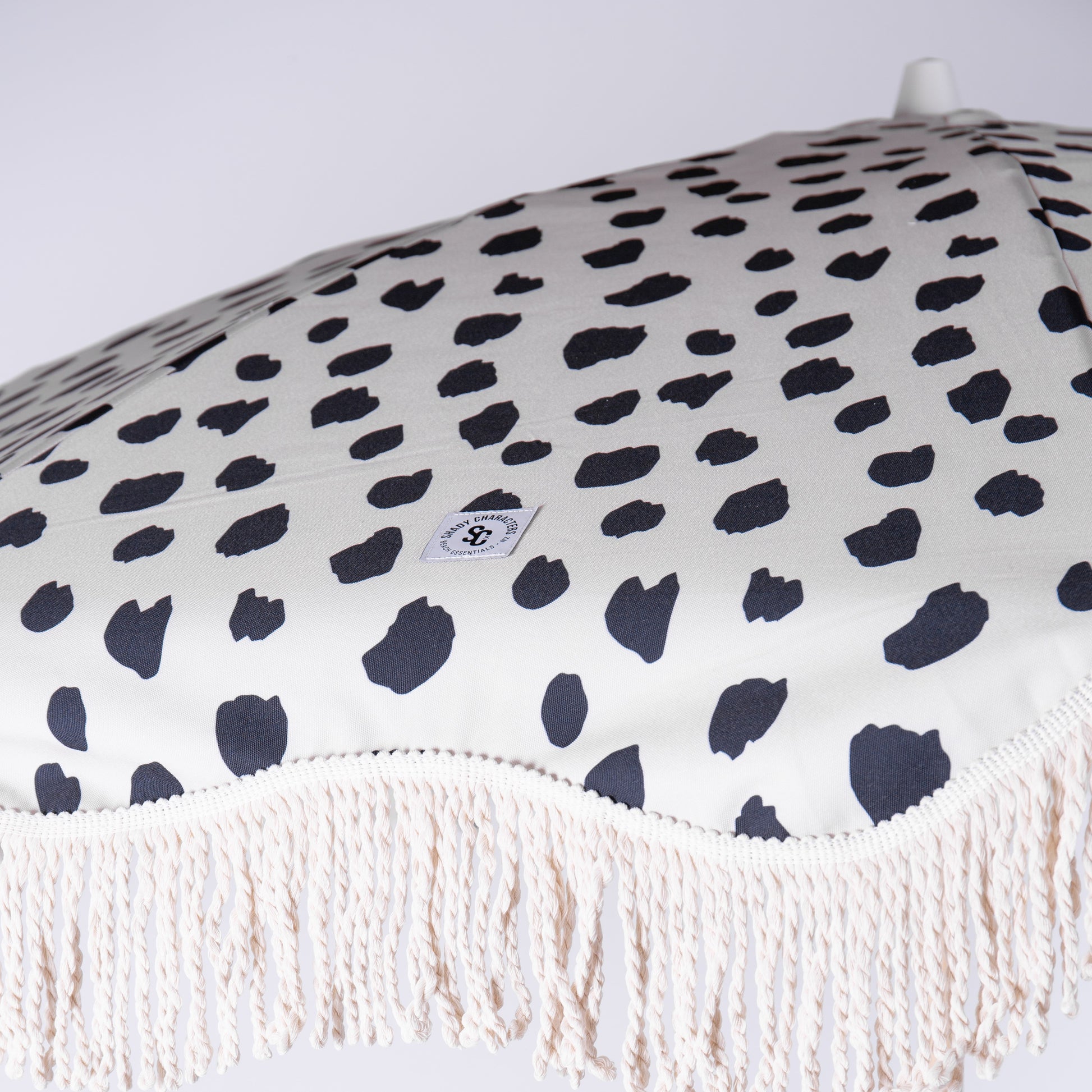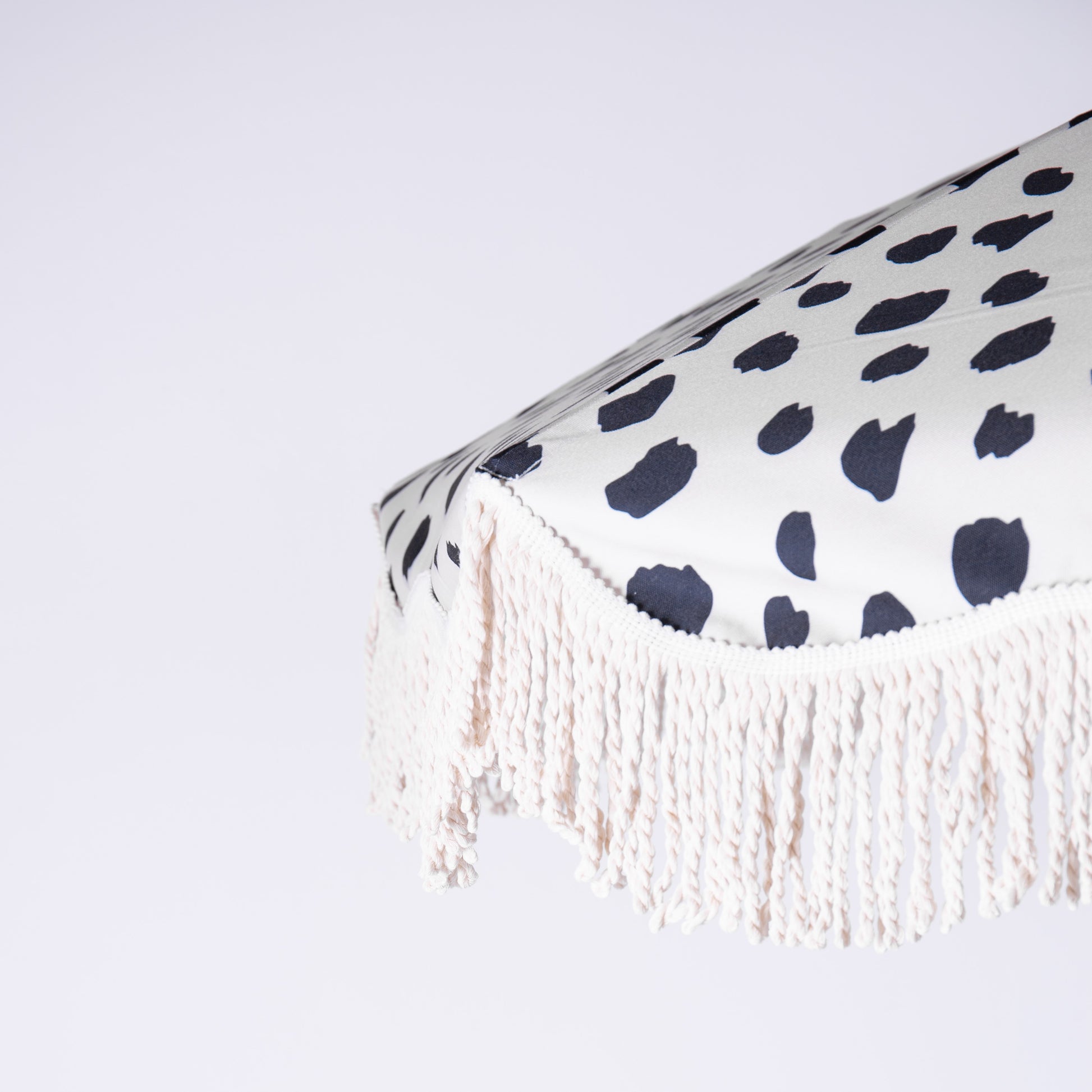 Look good this summer under this stunning beach umbrella in our spot design with the iconic tassel look. The large design will provide enough shade for you and your family to sit and play underneath confident in your protection from the sun.